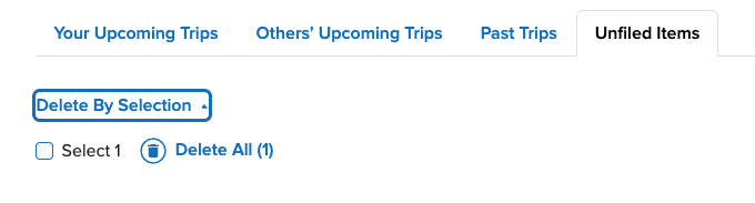 Travel plans that aren't associated with a trip are placed in the 'Unfiled Items' section of your account.